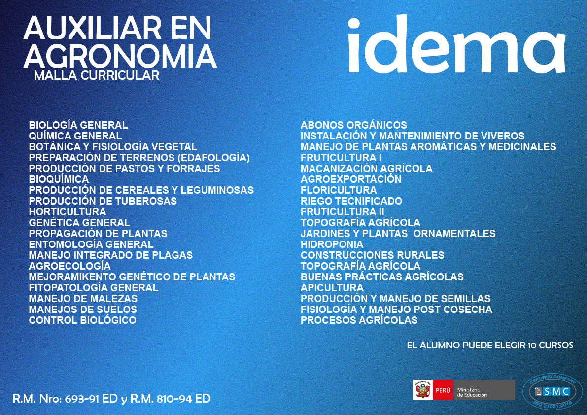 La carrera de Agronomía te permite desarrollar habilidades en el manejo de cultivos, suelos, riego y producción agrícola sostenible. Aprende las técnicas más modernas para optimizar la producción agrícola y contribuir al desarrollo del sector agropecuario en el Perú.